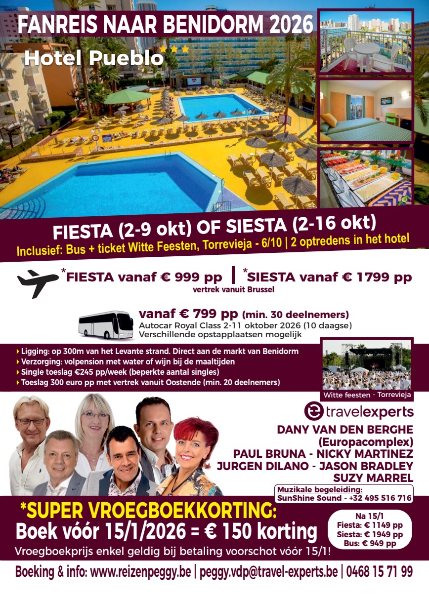 De nieuwe flyers van onze fanreizen naar Benidorm voor 2025 staan online.
